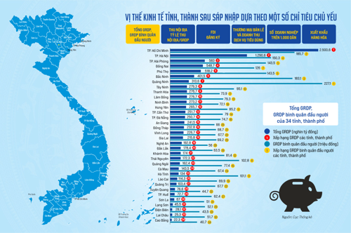 GRDP bình quân đầu người có vai trò quan trọng đối với GRDP, là tiền đề của thu nhập bình quân đầu người. Vị thế của các tỉnh, thành phố không chỉ giúp so sánh giữa các tỉnh, thành phố với nhau, mà còn so sánh với mức bình quân chung của cả nước.